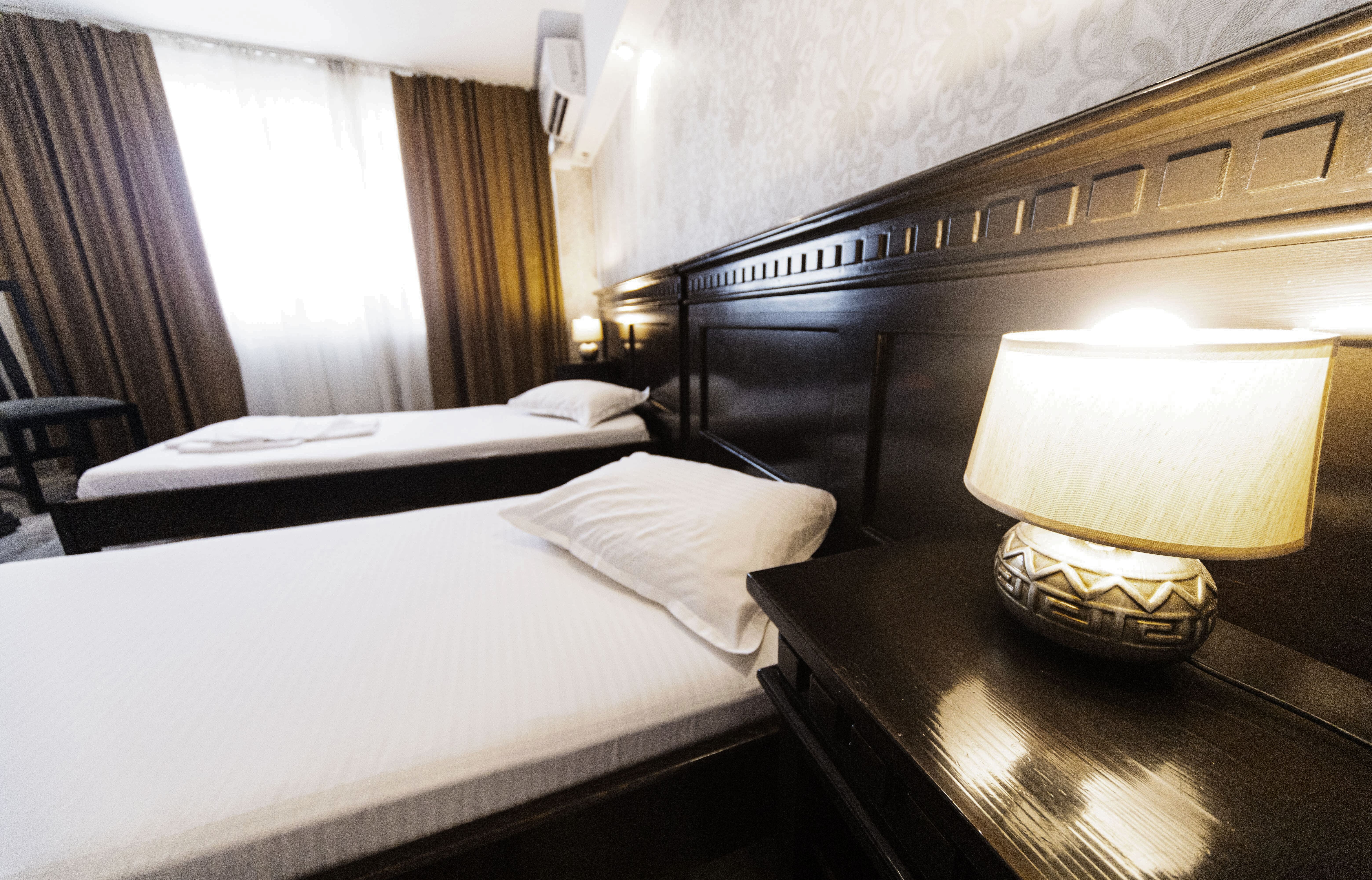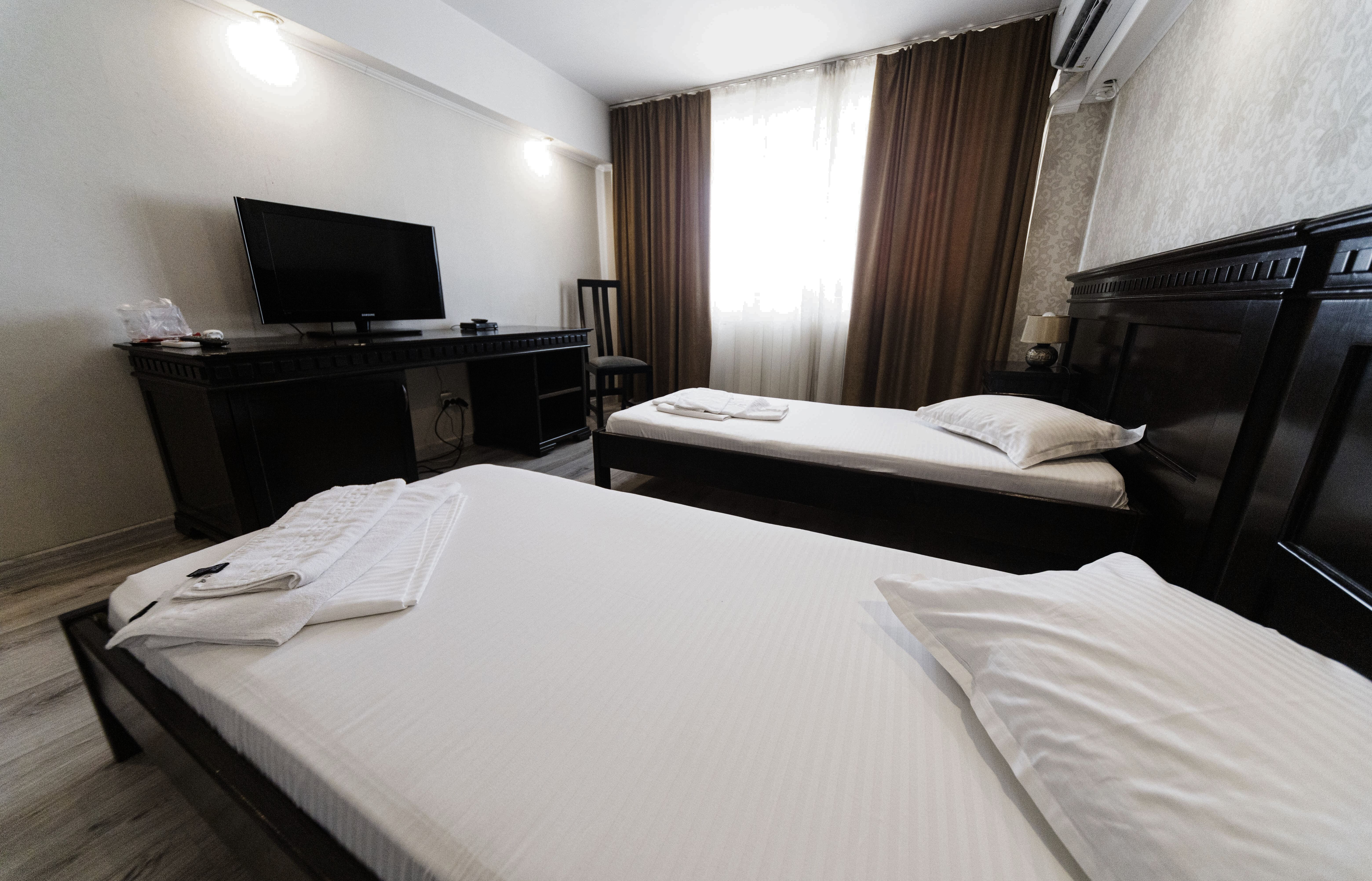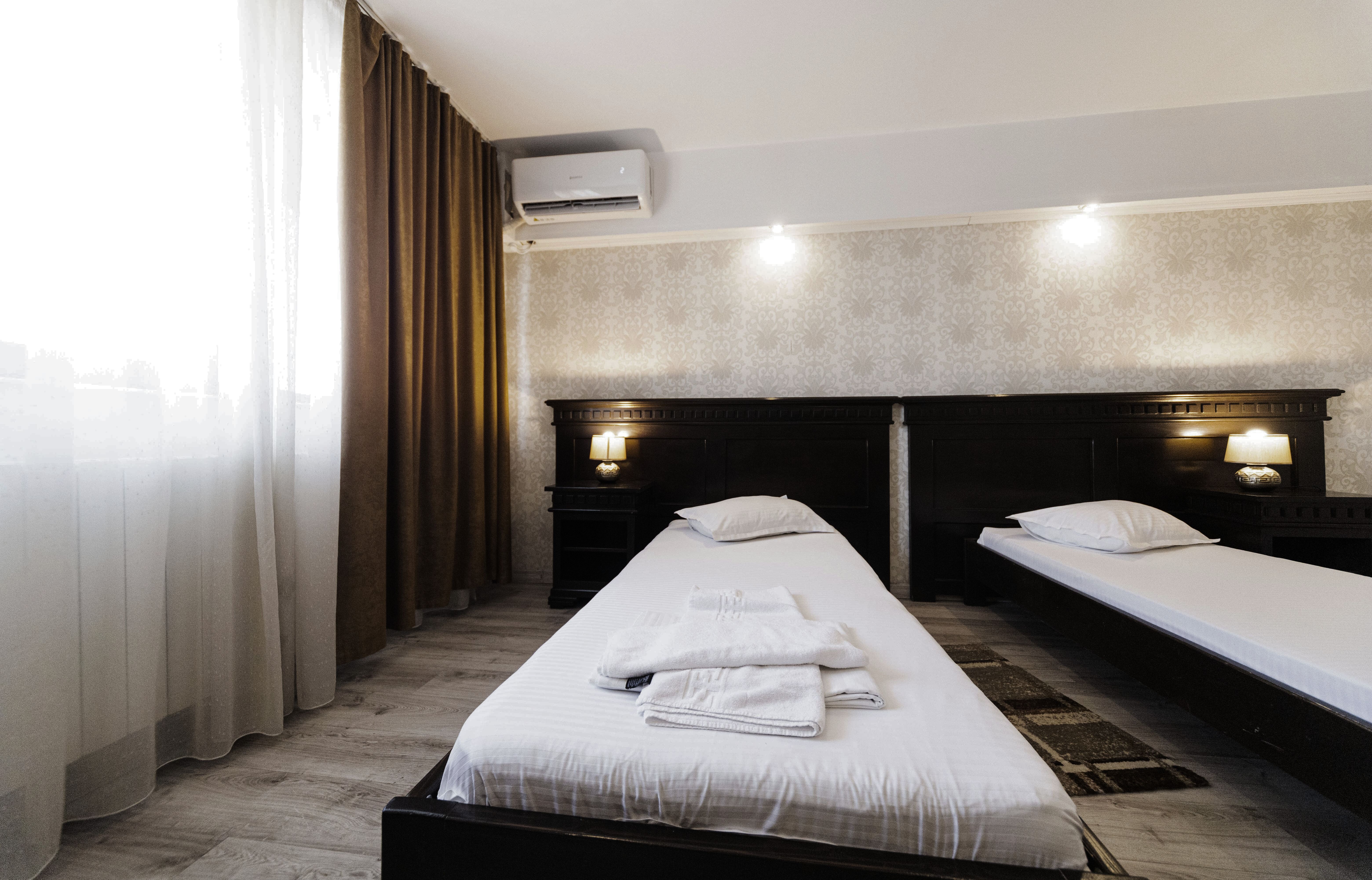 Camera Dublă oferă un spațiu generos și confortabil, ideal pentru cupluri sau pentru cei care preferă mai mult loc pentru relaxare. Această cameră este dotată cu un pat dublu, perfect pentru odihnă și somn liniștit. La cerere, putem asigura paturi suplimentare pentru a acomoda nevoile tale. Facilitățile includ Wi-Fi gratuit pentru a rămâne conectat, aer condiționat pentru un climat plăcut, un TV pentru momentele de divertisment, mini-bar pentru gustări și băuturi la îndemână, și o priză convenabil amplasată lângă pat pentru a-ți încărca dispozitivele. Camera Dublă este gândită pentru a oferi un sejur relaxant și confortabil, asigurând toate condițiile necesare pentru o experiență plăcută.